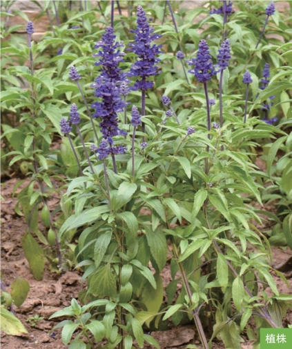形态特征:一年生草本,高30~60厘米,全株被柔毛。茎直立,钝四棱形。叶对生;叶片长椭圆形,长3~5厘米,宽1~3厘米,边缘具疏锯齿。轮伞花序具6~10朵花,组成顶生假总状花序;花序轴蓝紫色;花萼钟形,蓝色或蓝紫色;花冠二唇形,浅蓝色、蓝色或蓝紫色。小坚果暗褐色,椭圆形,光滑。花期5—6月,果期6—7月。