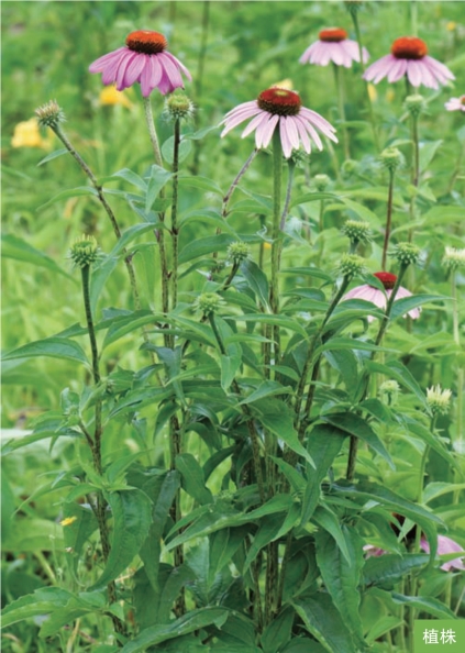 形态特征:多年生草本,高50~150厘米,全株被粗毛。茎直立,上部分枝。叶互生;基生叶卵形或三角形;茎生叶卵状披针形,顶端渐尖,基部楔形,渐狭至柄成狭翼,边缘具不整齐粗齿;叶柄基部稍抱茎。头状花序单生于枝顶或数朵聚生,花直径达10厘米;舌状花紫红色;管状花橙黄色,花期6—7月,果期8—9月。