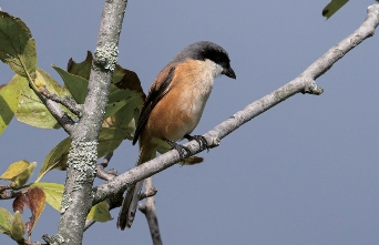 头侧具宽阔的黑色眼罩,头顶黑色的程度视不同的亚种而有区别;肩羽、下背为红棕色,下体浅棕红色或近白色。