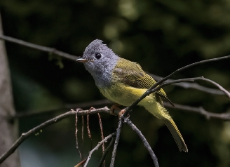 头和上胸灰色;上体黄绿色;腹部和尾下覆羽黄色;尾方型。