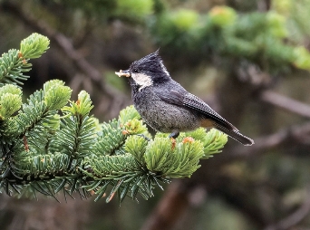 头以黑色为主,具有羽冠,在眼下和后枕形成明显的白色块斑;背和腹面黑灰色。幼鸟羽冠不明显,头上白斑沾黄色。
