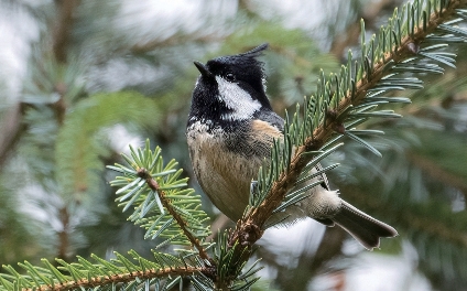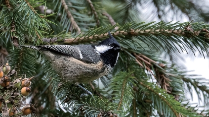 喉和羽冠黑色,眼下和后颈具白色块斑;上体深灰;下体浅棕褐色;翅上具有两道翼斑。
