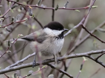 头顶和喉黑色,颊、耳羽和颈侧白色;上体褐色,下体灰白。