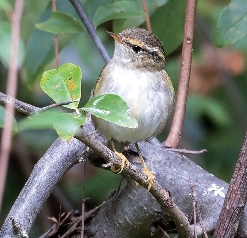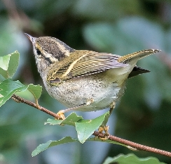 顶冠纹在前段模糊后段清晰,贯眼纹在脸部没有向下形成弯钩,显得脸部图案比较干净;通常2道黄色翼斑,腰部黄色,在黄腰系柳莺中显得羽色平淡。