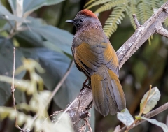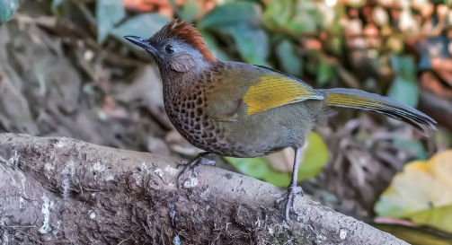 头顶至后枕栗红色;两翼和尾羽外缘为黄绿色;胸部和腹部中央具有黑色的矢状点斑。