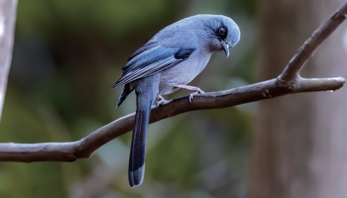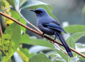 整体蓝灰色;眼周黑色;翅缘浅蓝灰,尾羽褐黑色,端斑暗灰色。