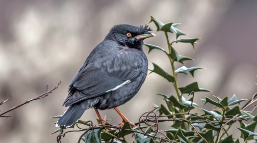 全身黑色,具有额基短羽冠,翅上具白块斑,外侧尾羽边缘白色。