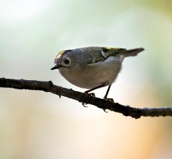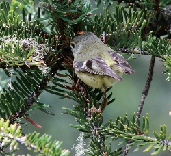 雄鸟头顶中央橙黄色。雌鸟头顶中央黄色中有橙色条纹,侧冠纹黑色,有白色眼圈,有两道白色翅斑,头顶斑块有时不易观察, 翼斑为本种与柳莺区分的有效方法。