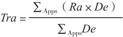 (2)在应用程序中,把具有SDK标示的应用程序在所有应用程序列表中设定为1,[30]然后把要进行分析的应用程序限定在具有上述特征以及至少连续360天都有数据的应用程序上。