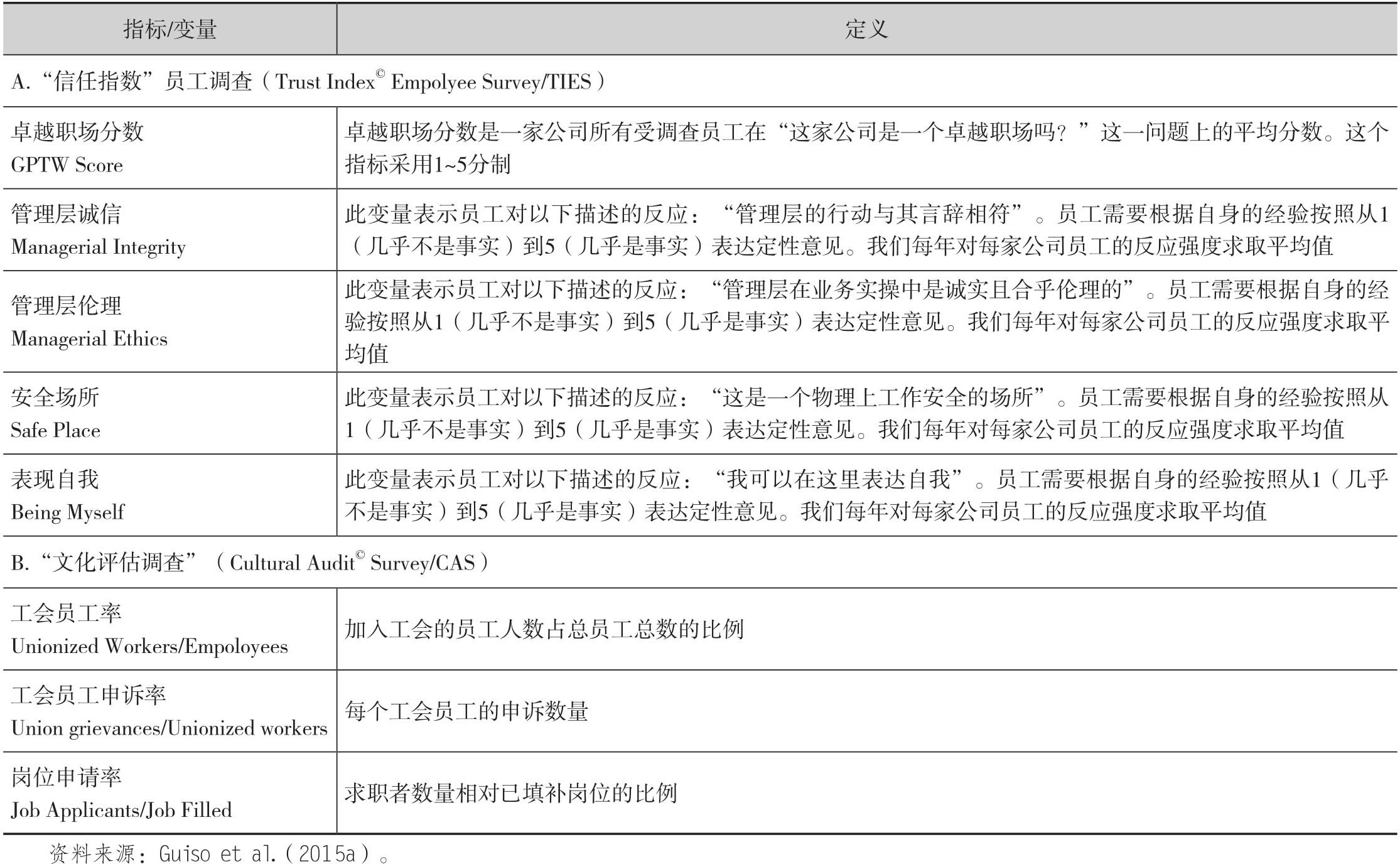 因为公司网站外宣的价值用词无法传递出真正的价值观所在,所以为了解决这个问题就需要寻找其他的另类数据源,由此Guiso et al.(2015a)就使用了卓越职场研究所(Great Place to Work®/GPTWI)的调查数据。[36]
