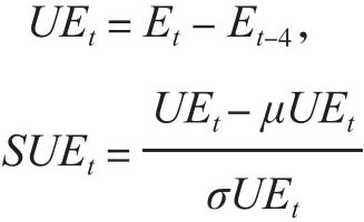 接下来Moniz(2019)讨论了公司文化指标对于盈余预测的影响,表1.20B报告了回归结果。沿用Bernard/Thomas(1989)的方法,我们可针对每个公司计算未预期盈余(unexpected earnings/UEs)和标准化未预期盈余(standardized unexpected earnings/SUEs):
