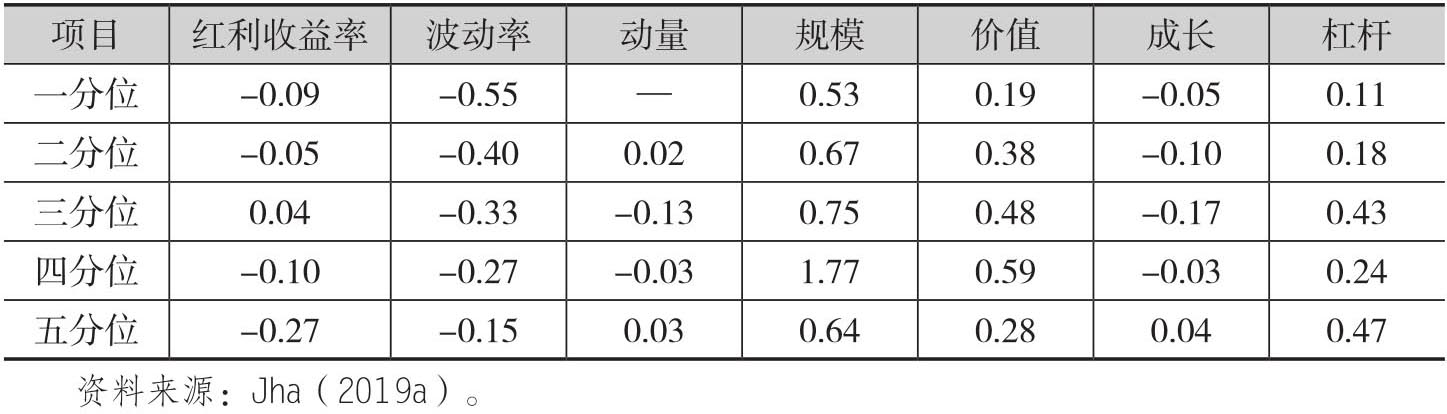 表1.25 五分位股票池的常见风险因子平均敞口