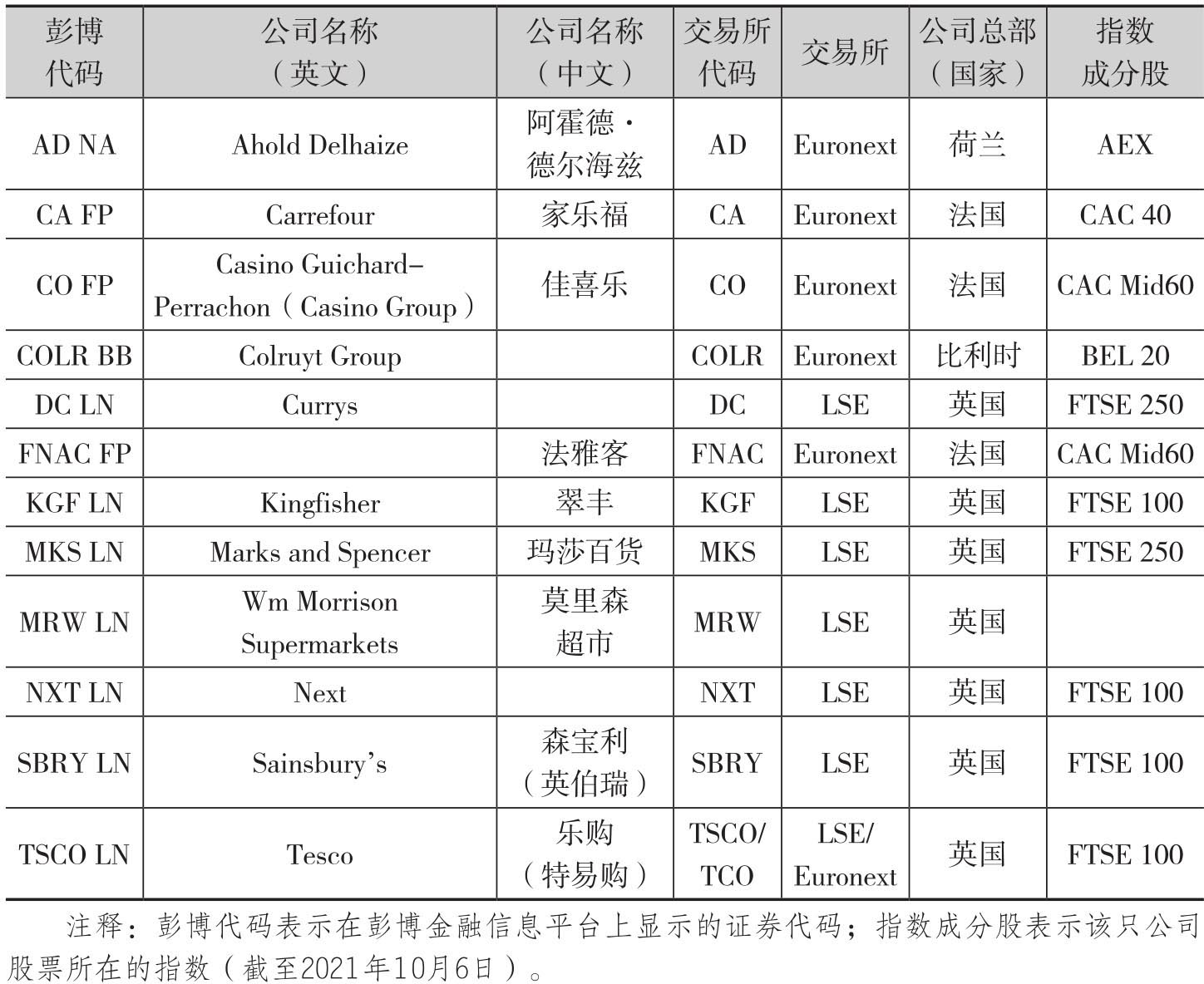 表2.1 欧洲零售企业信息