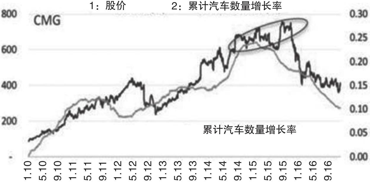 图2.4 累计汽车数量增长率与股价变动:CMG公司