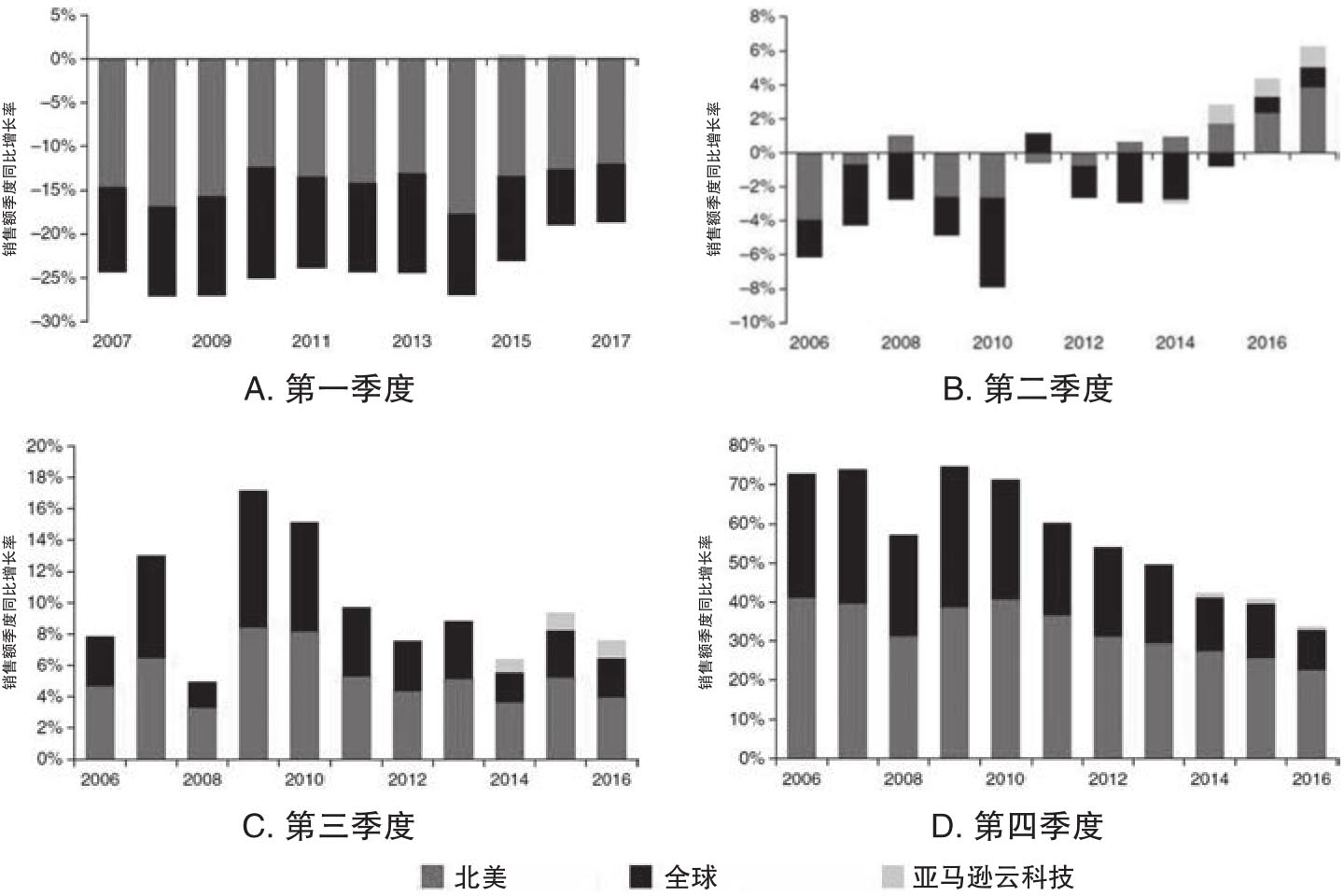 图2.12 亚马逊销售额不同季度同比增长率