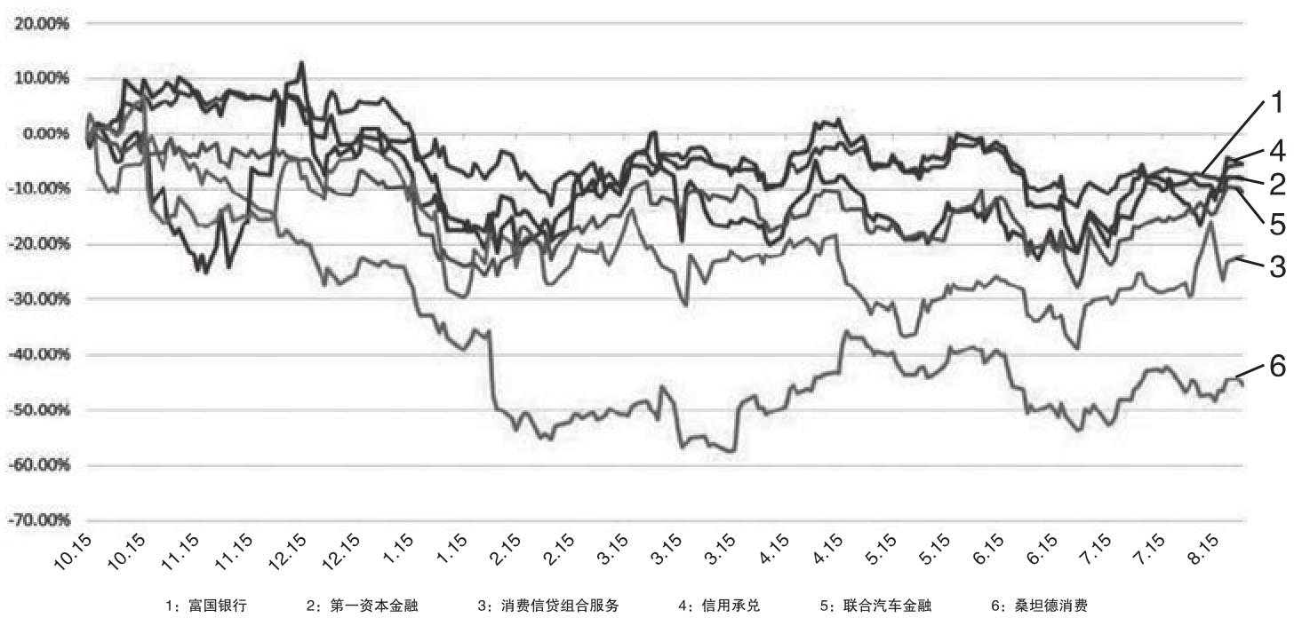 图2.30 2015年10月13日后一些汽车贷款机构的股价