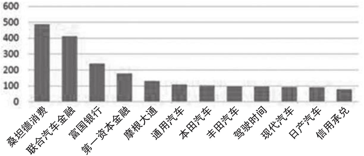 图2.29报告了2015年消费者金融保护局收到的有关车辆贷款和租车服务方面的投诉次数,涉及12家汽车贷款服务机构,表2.6给出了这些贷款服务机构的基本情况。图2.29清楚地表明了桑坦德消费公司和联合汽车金融公司的问题。