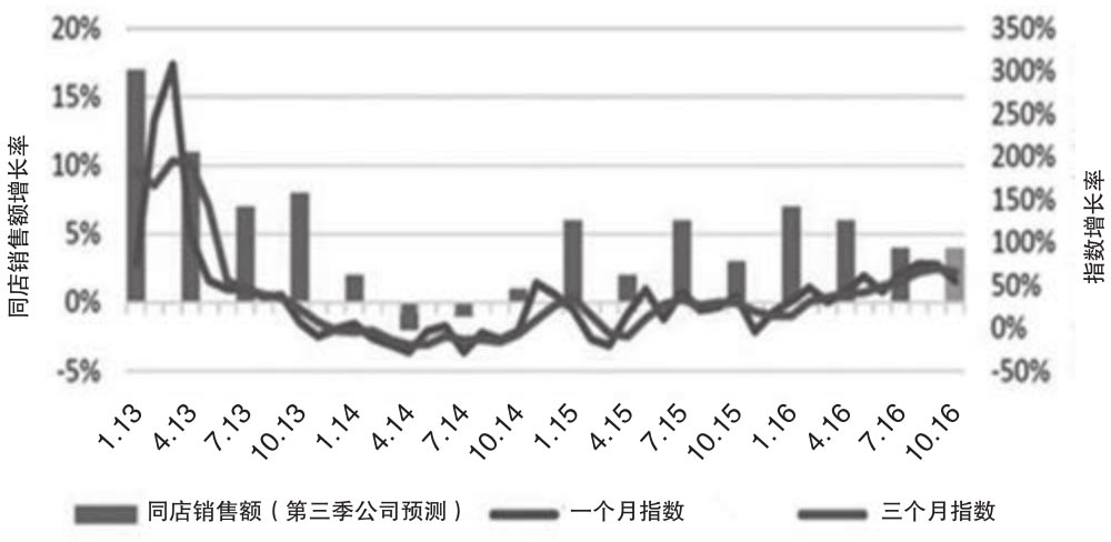 图2.33 露露乐蒙的同店销售额增长率和搜索指数增长率