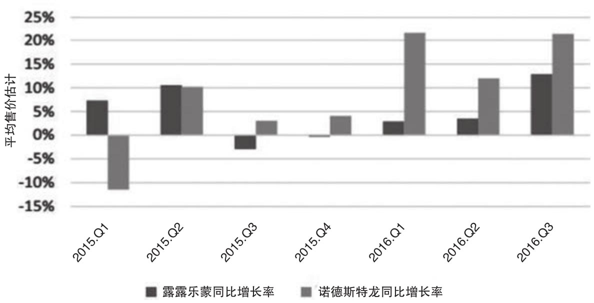 图2.35 露露乐蒙的平均售价增长率