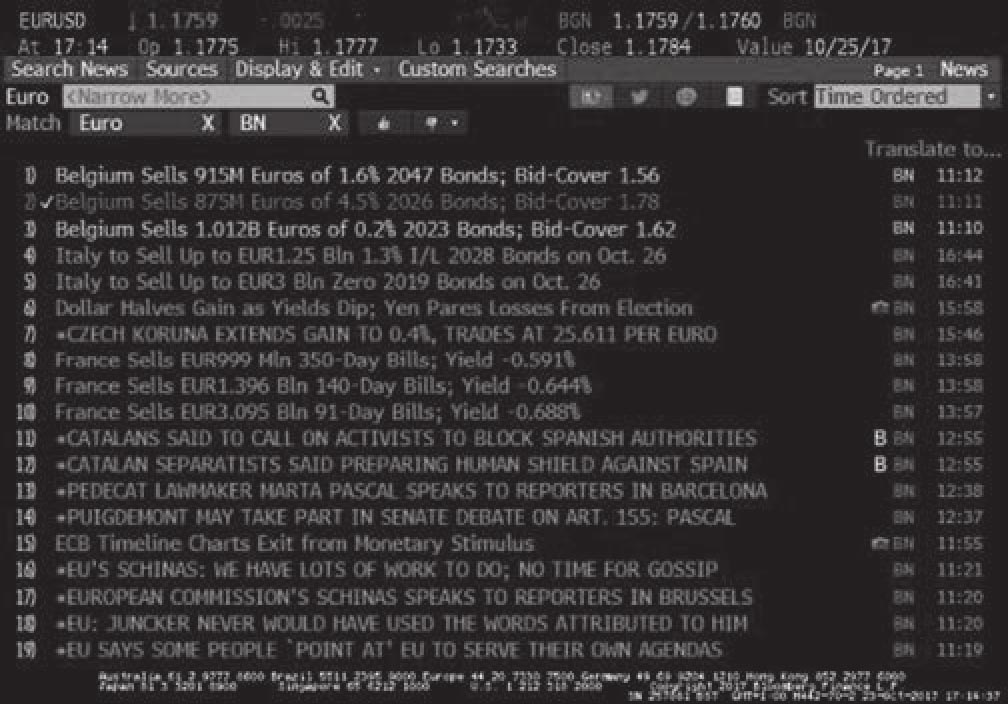 图3.4 彭博新闻作为来源的欧元/美元汇率新闻