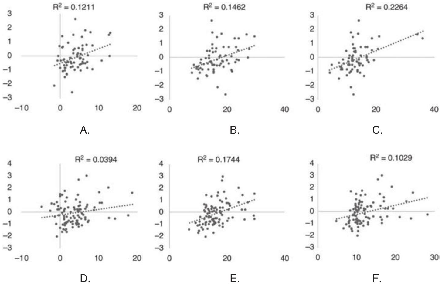 图3.14用散点图的形式说明了欧元/美元汇率隔夜波动率和FOMC/ECB会议新闻量之间的关系,其中的第一行和第二行分别刻画的是汇率隔夜波动率和美联储(欧洲央行)会议之前新闻量的散点图;第一列、第二列和第三列则分别刻画了波动率增量、隔夜隐含波动率和隔夜实际波动率与两家中央银行开会之前新闻量的散点图。图中也给出了新闻量相对波动率指标进行回归的拟合优度R2。除了图D之外,R2都没有小到忽略不计的地步。这就表明,在给类似央行会议这样的重大财经事件产生的波动率进行建模时,财经新闻的数量是一个有益的补充变量。