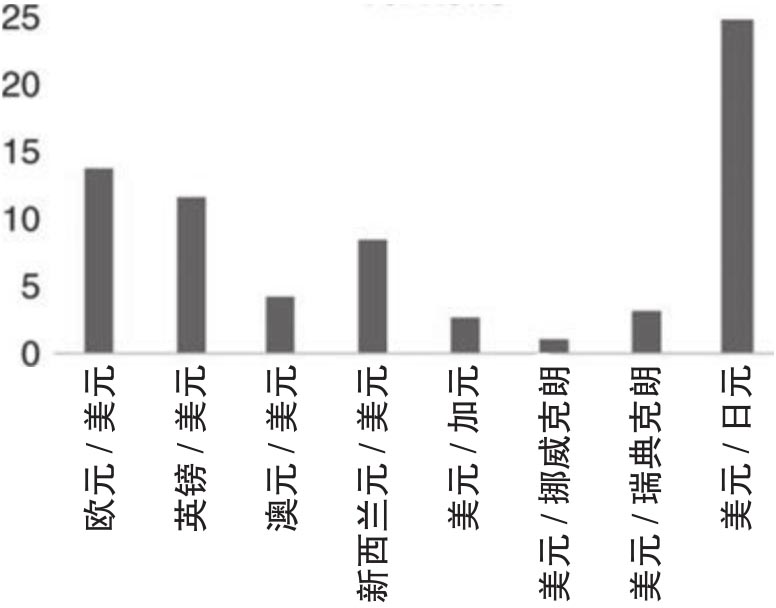 图3.5 每种货币的日均新闻报道数量
