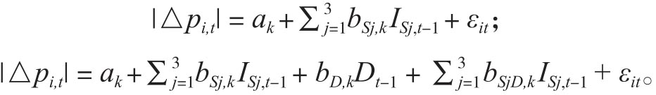 在这两个回归中,时间下标t表示FOMC新闻发布会以分钟划分的时段,这样因变量中的|△pi,t|表示资产类型k中资产i价格在发布会每分钟变化率的绝对值。自变量中的IS,t和Dt则是两个哑变量,前者表明了每分钟内美联储主席讲话的时间定向,后者表明了每分钟美联储主席讲话和FOMC声明中信息的关联性。就时间定向哑变量来说,作者根据Pennebaker et al.(2015)构建的《语言查询和字数统计2015》(Liguistic Inquire and Word Count/LIWC),计算了美联储主席发言时词语属于未来(j=1)、现在(j=2)和过去(j=3)的占比。当某分钟的讲话上述三类单词占比排在前10%时则取值为1,否则取值为0。比如某分钟内美联储主席讲话中的单词非常多地讨论未来,从而在所有分钟内涉及未来的单词占比达到了最高的10%,那么这一分钟的时间定向哑变量Is1=1。哑变量D则表明了新闻发布会每分钟的沟通和FOMC会议声明中的新闻关联性。作者使用了自然语言处理技术来表明这两者之间的关联,如果证明有关联,那么这个哑变量取值为1,否则取值为0。这两组回归结果证实了前面的猜测:当美联储主席在发布会上更关注未来时,资产价格的变动就越大,而且这种影响会随着合约月份的延长而增加。而且美联储主席讲话的时间定向效应压倒了声明关联效应,也就是说当美联储主席讲话谈及FOMC会议声明时,资产价格的变动主要集中在美联储主席高度关注未来的分钟时段内。