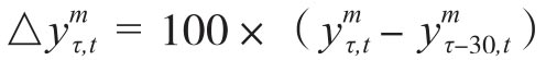 表示到期日为m(2年、5年或10年)的美国国债期货在t日时点τ收益率。因为非农就业公告是在美东时间早上8点半公布的,这样