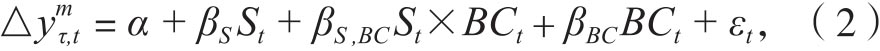 就定义了公告前后的收益率变动,其中τ-30和τ分别表示上午8:29分初和8:59分末。自变量St表示在非农就业公告日t出现的NFP意外,也就是官方公布的实际数据和彭博社给出的专家预测中位数之间的差额,这样系数βS就衡量了国债期货收益率对于NFP意外的敏感性。另外自变量BCt和HBCt表示在t日公告之前两个小时的信息需求,其中BC表示点击量(Bitly count),也就是在给定时段内NFP的点击次数,表示高点击量哑变量(High Bitly count),也就是当给定时段点击量超过样本时段中位数设定为1,否则为0。