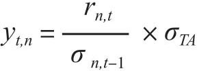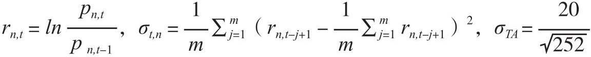 这里Pn,t表示第n种能源期货在时点t的收盘价,计算标准差时时间窗口取m=21表示过往一个月的实现波动率,[5]而表示设定的年化目标波动率是20%。