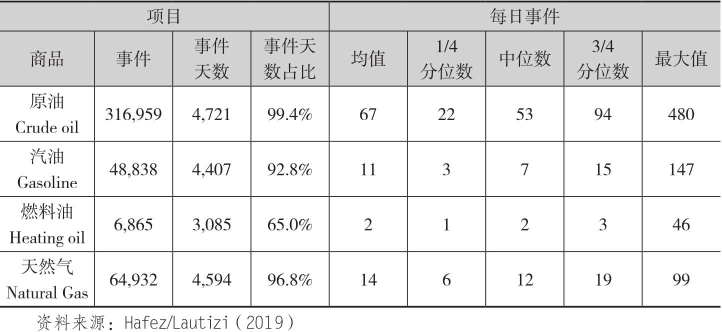 表4.1 四种能源类商品期货基本事件信息(2005.01—2017.12)