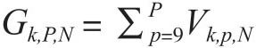 Yk,N=βk,P,0 +βk,P,1×N +βk,P,2×Mk,P,N +βk,P,3×(Gk,P,N - Mk,P,N)+εk,P,N