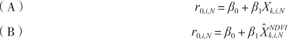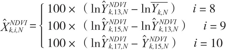 在上述两个式子中P∈{9,...,17}。由此Piette就针对样本中的每个州建立了基于NDVI的产量预测回归模型: