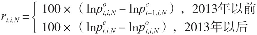 分别表示第N年的12月期货合约在第i个发布月份(i=8,9,10)交易日t的开盘价和收盘价,其中t=0对应事件研究的原点,也就是报告发布日。