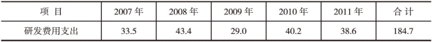 表2-10 尚德电力2007~2011年技术研发资金使用情况(单位:百万美元)