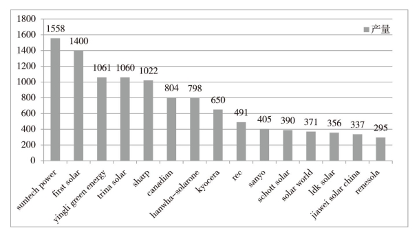 图2-5 2010年世界光伏组件前15名厂商排名(单位:兆瓦)