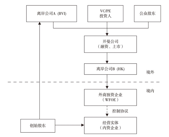 1.企业(指内资经营实体)的创始股东在境外设立一个离岸公司A,比如在维京群岛(BVI)或是开曼群岛。