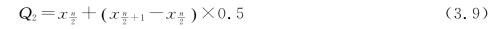 对样本数据集合中的所有数据排序,结果为x1≤x2≤…≤xn,n为样本容量,则在上述排序的序列中,把处于“正中间位置”上的数据称为样本中位数,用Q2表示。