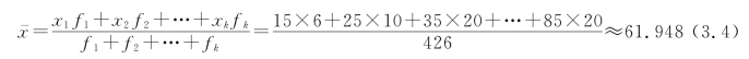 对于经分组整理的样本数据x1,x2,…,xn,样本均值的计算公式为