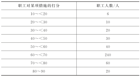 表3.3 某地区抽样调查的职工对某项改革措施的打分资料