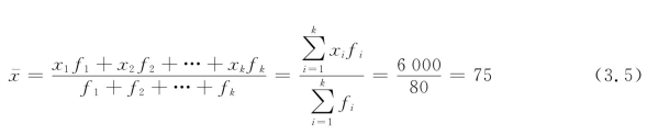 例3.6 50名学生统计学考试成绩分布表如表3.5所示,试求该数据集合的众数。