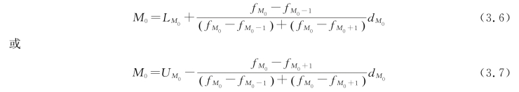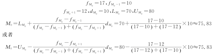 其中,dM0表示等距分组的组距;fM0-fM0-1表示组频数与前一组频数之差;fM0-fM0+1表示组频数与后一组频数之差;LM0表示众数组的下限;UM0表示众数组的上限。