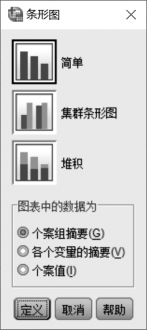 ⑤选择“简单”,图表中的数据选择“个案组摘要”,单击【定义】按钮,如图3.10所示。
