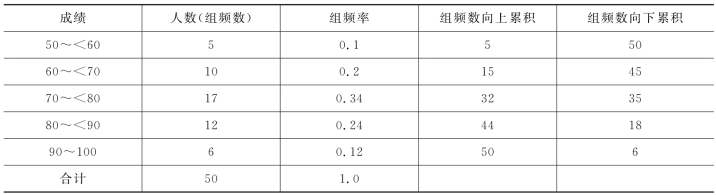 显然,只有样本数据在顺序级以上,计算累积频率才有意义。因为计算累积频率的前提是不重复的样本值的排序:x1<x2<…<xm,而定类级的样本值不存在大小排序问题,所以就不存在累积频率的概念。