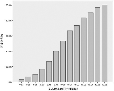 ⑦单击【确定】按钮,系统输出累积频率条形图,如图3.11所示。