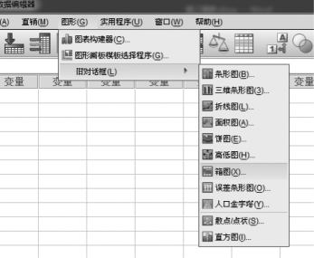 当有分组变量时,还可以选择【图形】→【旧对话框】→【箱图】,生成分组箱形图。