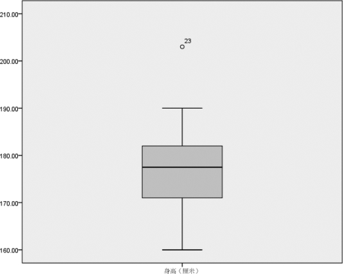 修正箱形图可以“剔除”特别大或者特别小的数据对箱形图的影响,从而较为恰当地表达样本数据集合的基本特征。从图3.32也可以看到,除了上“胡须”的上端点外,有一些处于外围值的点也是被“剔除”的点。