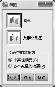 ①在调入数据后,单击【图形】→【旧对话框】→【箱图】,然后选择默认值“简单”“个案组摘要”,如图3.29和图3.30所示。
