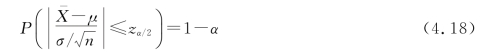 选取含有已知变量最多的统计量来对未知参数进行区间估计,由于正态总体的方差已知,则根据式(4.5),查表可求得zα/2,使得