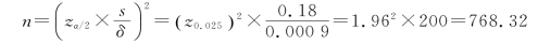 解:由题目知,δ=0.03,所以δ2=0.0009,s2=0.18,于是样本容量为